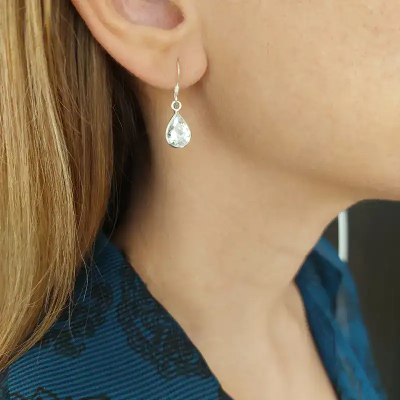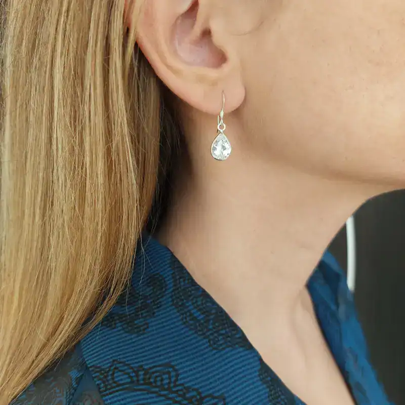 Ασημένια σκουλαρίκια κρεμαστά με πέτρα ζιργκόν σε σχήμα σταγόνας- Tear of Light