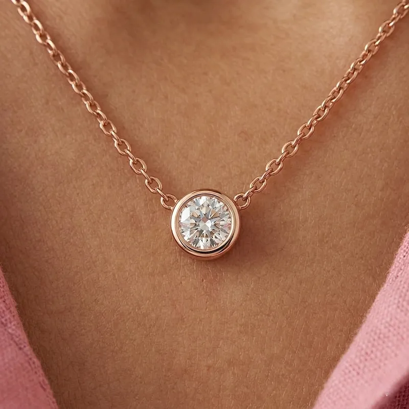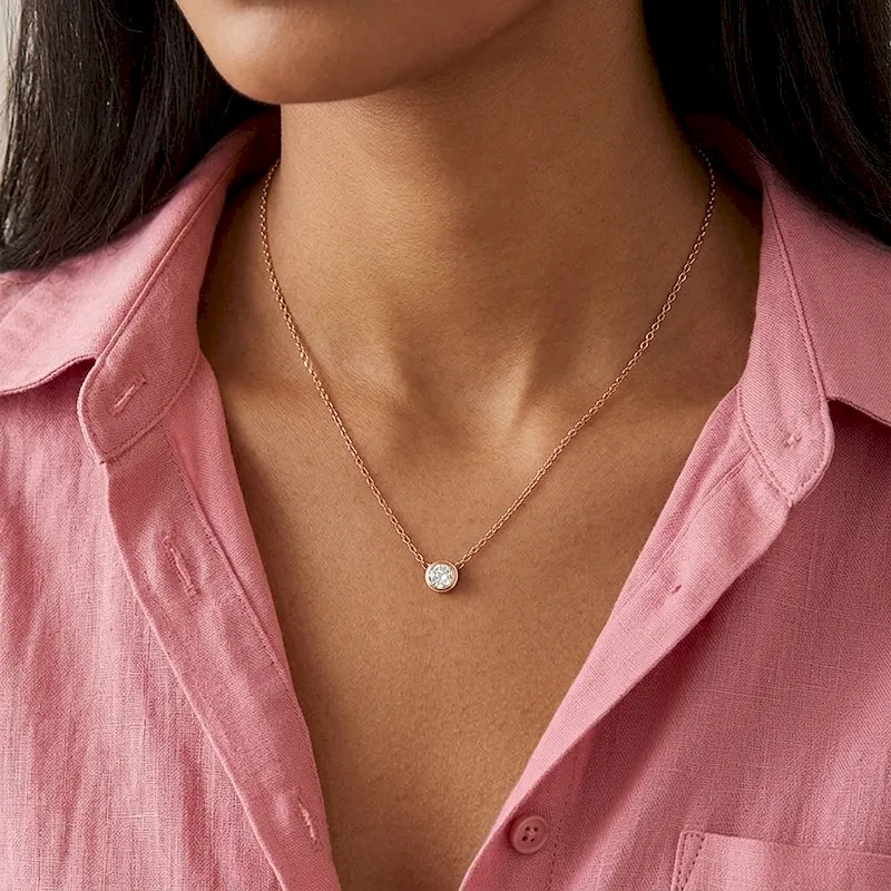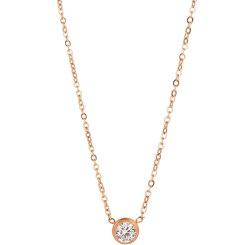 Ατσάλινο κολιέ ροζ-χρυσό με ζιργκόν – Rose Gold Sparkle Necklace