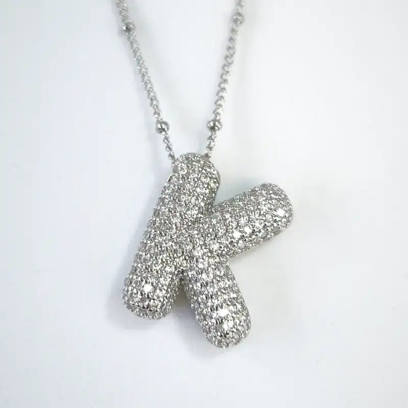 Αυτό το γυναικείο κολιέ είναι το απόλυτο fashion trend της σεζόν. Διαθέτει κομψή, επίχρυση ατσάλινη αλυσίδα τύπου beaded chain (με μπίλιες), με το γράμμα ‘K’ στο δημοφιλές balloon στυλ. Είναι καλυμμένο εξολοκλήρου με αστραφτερά ζιργκόν, προσδίδοντας μία αίσθηση πολυτέλειας και glamour. Ιδανικό για layering με άλλα κολιέ ή για statement εμφάνιση μόνο του. Ένα must-have κόσμημα και μία εξαιρετική πρόταση δώρου.Το μήκος του κολιέ είναι 45cm με αλυσιδάκι επέκτασης +5cm, ενώ το μονόγραμμα έχει διαστάσεις 2.2+1.8 cm.