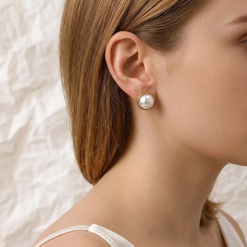 Επίχρυσα Ατσάλινα Σκουλαρίκια Πέρλα – Pearled Button Earrings