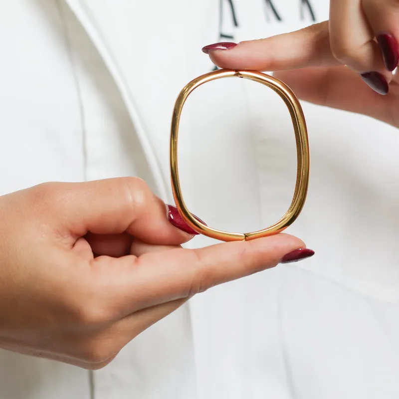 Επίχρυση χειροπέδα από ανοξείδωτο ατσάλι, σε ορθογώνια γραμμή για τολημρό στυλ.