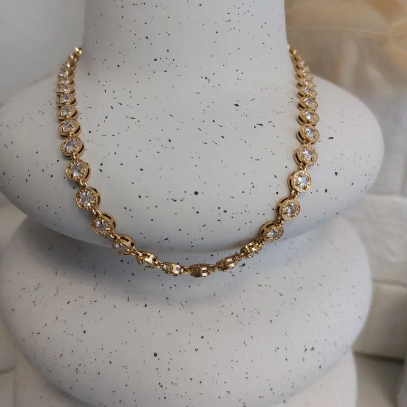 Η hot τάση του φθινοπώρου! Ετοιμάσου να λάμψεις! Αυτή η επιχρυσωμένη ριβιέρα λαιμού (Tennis Necklace) με λαμπερά στρογγυλά ζιργκόν είναι το απόλυτο αξεσουάρ για να αναβαθμίσεις την εμφάνισή σου αλλά και την διάθεση σου. Το ανοιξείδωτο ατσάλι την καθιστά ανθεκτική και ιδανική για να φοριέται κάθε μέρα, χωρίς να χάνει τη λάμψη της. Φόρεσέ τη με άλλα ατσάλινα κολιέ ή άφησέ τη να κλέψει την παράσταση μόνη της. Η ριβιέρα έχει μήκος 40cm (διαθέτει και αλυσίδα επέκτασης + 5cm).