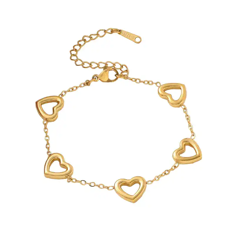 Επίχρυσο βραχιόλι με καρδιές από ανοξείδωτο ατσάλι- Golden Heart Bracelet