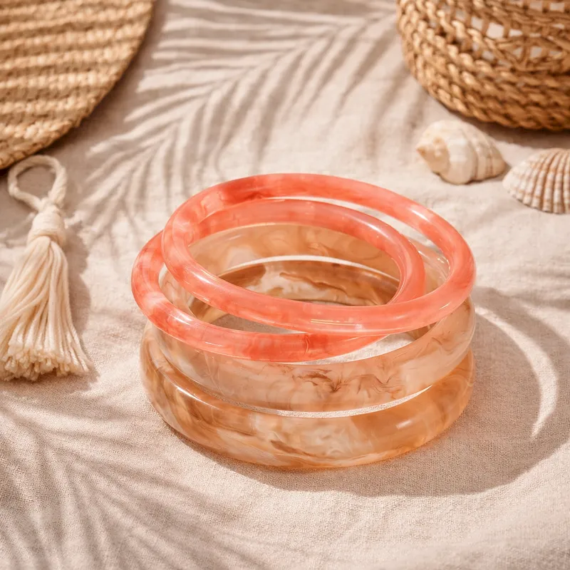 Σετ Ακρυλικών Βραχιολιών σε ροζ χρώμα- Sunset Swirl Bangle Set