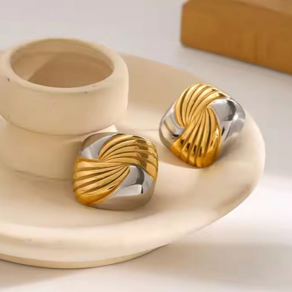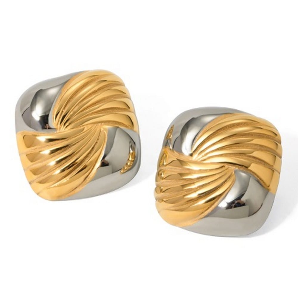 Σκουλαρίκια από ανοξείδωτο ατσάλι τετράγωνα σε διχρωμία- The Vortex
