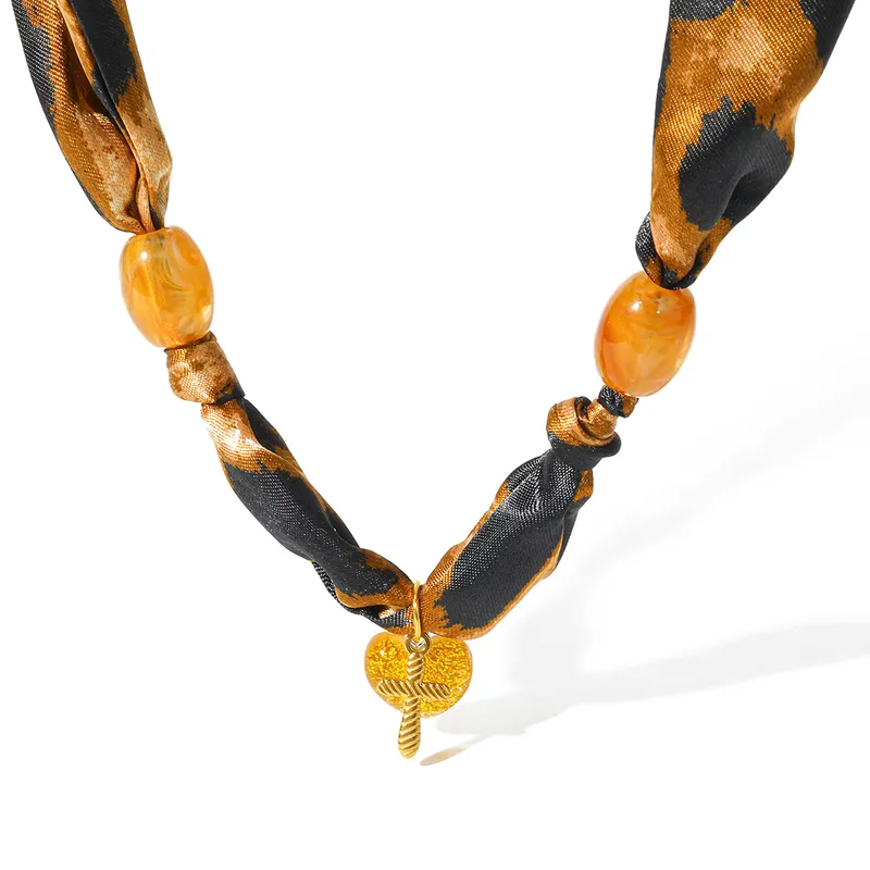 Υφασμάτινο Κολιέ Scarf με Animal Print & Στοιχεία – Leopard Scarf Necklace with Charms